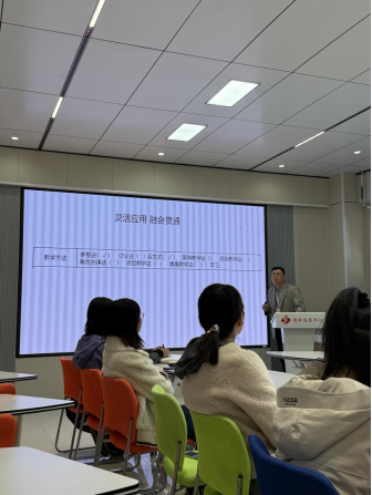首先,何龙老师结合自身从教经历,分享了教学风格、教学方法、信息搜集与整理、教学设计思路及课程思政等实践经验,始终突出“以学生为中心”的教育教学理念。