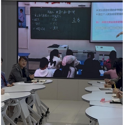 4月24日下午,全面质量管理办公室联合教师发展中心在2教2102教室举办第51期教师成长沙龙。本次活动由全质办主任孟艳辉主持,校级教学督导员蒋春艳到场指导,学生发展中心教师何龙老师主讲,24位教师积极参与。本期沙龙聚焦《生涯发展系列课程 Ⅲ》中“求职与面试”模块内容展开研讨。活动科学设置经验分享、线上集中观摩、督导精准点评三大环节,深度践行“数智赋能,督导促教”工作理念,有效助力教师教学能力与课程建设水平提质升级。